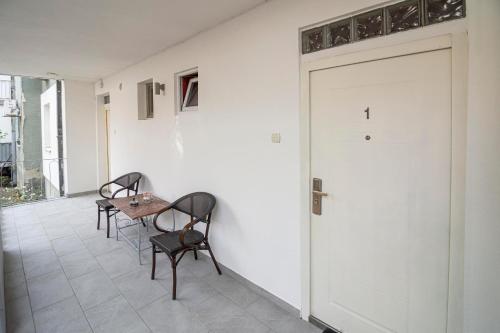 تتوفر (1) غرفة نوم في الشقة، وتراس، وغرفة معيشة، ومطبخ مجهز بشكل جيد ويحتوي على ثلاجة وغسالة صحون. يتوفر تلفزيون بشاشة مسطحة.