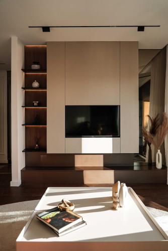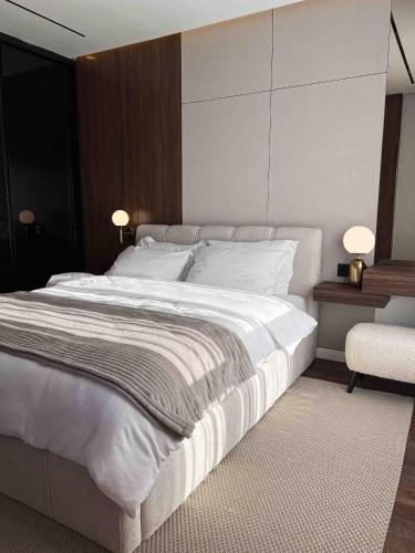 تتوفر (1) غرفة نوم في هذه الشقة، وغرفة معيشة، ومطبخ مجهز بالكامل فيه ثلاجة وماكينة قهوة، و (1) حمّام مع دش ولوازم استحمام مجاناً، وجهاز تكييف. تتوفر مناشف وبياضات أسرّة في الشقة.