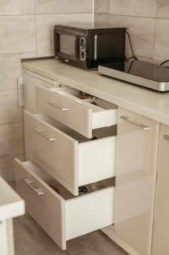 يتوفر تلفزيون بشاشة مسطحة مع قنوات الكابل في الشقة يحتوي المطبخ على ثلاجة وميكروويف وموقد مسطح، ويوجد دش مع لوازم استحمام مجاناً ومجفف للشعر.