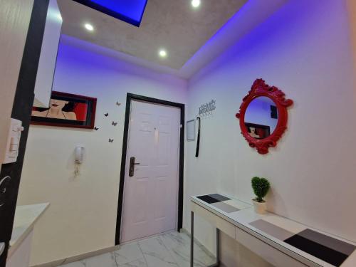 تتوفر (1) غرفة نوم في هذه الشقة، وغرفة معيشة، ومطبخ مجهز بالكامل فيه ثلاجة وغلاية، و (1) حمّام مع دش ولوازم استحمام مجاناً، وجهاز تكييف. تتوفر مناشف وبياضات أسرّة في الشقة.