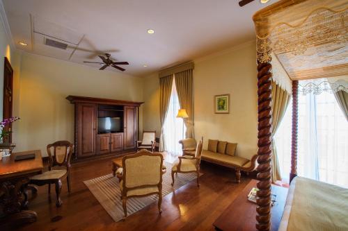 يُمكن الاستمتاع بخيارات تناول الطعام المحلية والعالمية في مطعميّ الفندق القائميّن في الموقع، وهما Verandah و1864. كما يُمكن للضيوف التوجه إلى البار لتناول المشروبات.