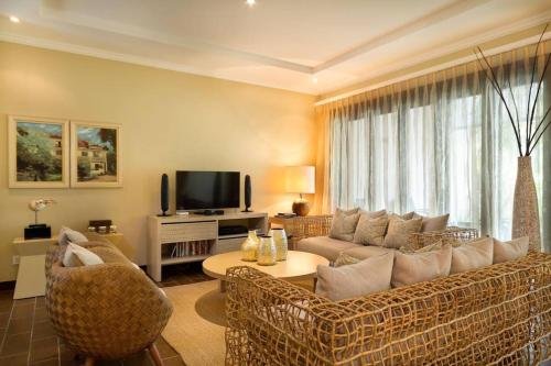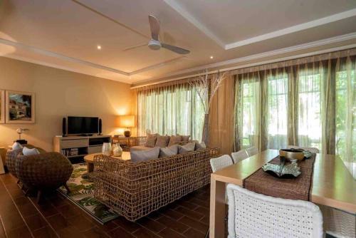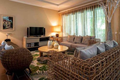 تتوفر (3) غرفة نوم منفصلة في بيت العطلات، وغرفة معيشة، ومطبخ مجهز بالكامل، و (3) حمّام، وجهاز تكييف. يتوفر تلفزيون بشاشة مسطحة.