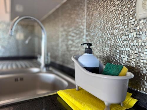 تتوفر (2) غرفة نوم في هذه الشقة، وغرفة معيشة، ومطبخ مجهز بالكامل فيه ثلاجة وماكينة قهوة، و (1) حمّام مع دش ومجفف للشعر، وجهاز تكييف. تتوفر مناشف وبياضات أسرّة في الشقة.