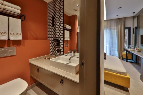 يوفر "Neva Kaş" للضيوف غرفاً مكيفة وتحتوي على مكتب وماكينة قهوة وصندوق ودائع آمن، بالإضافة إلى تلفزيون بشاشة مسطحة وتراس وحمّام خاص مع دش. تحتوي بعض الغرف في "Neva Kaş" على إطلالات على المدينة، بينما تتميز جميع الغرف بشرفة. تحتوي كل غرفة في "Neva Kaş" على بياضات أسرّة ومناشف.