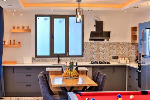 تتوفر (2) غرفة نوم في الفيلا، و (2) حمّام، وبياضات أسرّة، ومناشف، وتلفزيون بشاشة مسطحة، ومنطقة لتناول الطعام، ومطبخ مجهز بالكامل، وتراس مع إطلالات على البحر.