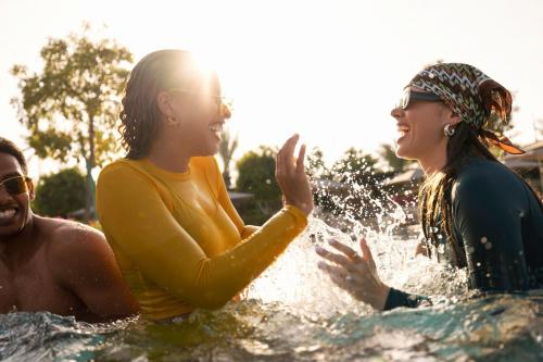 تحتوي جميع الغرف على تكييف هواء وتلفزيون بشاشة مسطحة مع قنوات فضائية، بينما توفر بعض الغرف إطلالات على البحر وبعضها الآخر إطلالات على الحديقة، كما تحتوي جميع الغرف على غلاية كهربائية وآلة لصنع القهوة، فيما توفر الغرف حمّاماً خاصاً مزود بلوازم الاستحمام مجاناً ورداء حمّام بالإضافة إلى مسبحين خارجيين ومجفف للشعر.