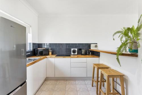 All suites feature open plan living with installed split system heating and cooling and deluxe pillow top mattresses. They offer a kitchen, dining area and en suite bathroom with a shower and toilet. Kitchen facilities include a microwave, stove top, large fridge/freezer, toasters, kettle, cutlery, crockery, and complimentary in-room tea/coffee/milk. Also offered is a hairdryer, iron and ironing board with a laundry service also available for a small cost.