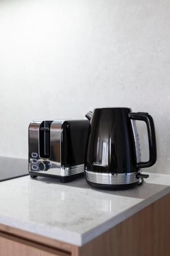 The apartment provides guests with a balcony, a seating area, satellite flat-screen TV, a fully equipped kitchen with a dishwasher and an oven, and a private bathroom with shower and a hair dryer. A microwave, a toaster and fridge are also provided, as well as a kettle. At the apartment complex, units come with bed linen and towels.