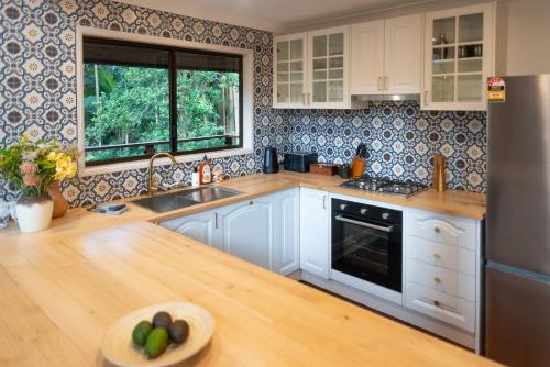 Featuring air-conditioned accommodation with a patio, The Mountain Chalet is located in Eagle Heights. This recently renovated chalet is located 6.4 km from Tamborine Rainforest Skywalk and 20 km from Warner Bros. Movie World. The chalet also provides free WiFi, free private parking and facilities for disabled guests.