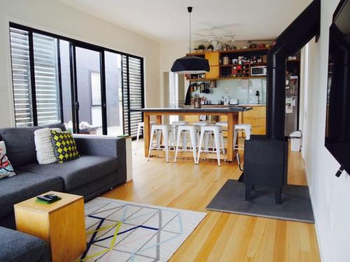 Situated in Apollo Bay in the Victoria region and Apollo Bay reachable within 500 metres, Kutu Ev features accommodation with free WiFi, barbecue facilities, a private beach area and free private parking. The 5-star holiday home has garden views and is 1.1 km from Mounts Bay. Outdoor seating is also available at the holiday home.