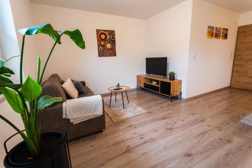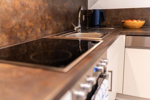 The apartment with a balcony and mountain views features 1 bedroom, a living room, a flat-screen TV, an equipped kitchen with a dishwasher and an oven, and 1 bathroom with a walk-in shower. Towels and bed linen are featured in the apartment. The property has an outdoor dining area.