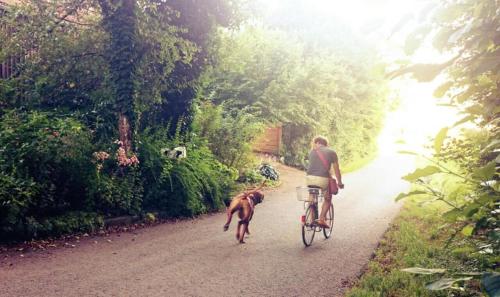 Guests can also warm themselves near outdoor fireplace after a day of cycling.