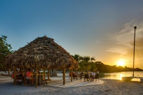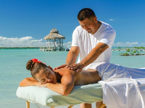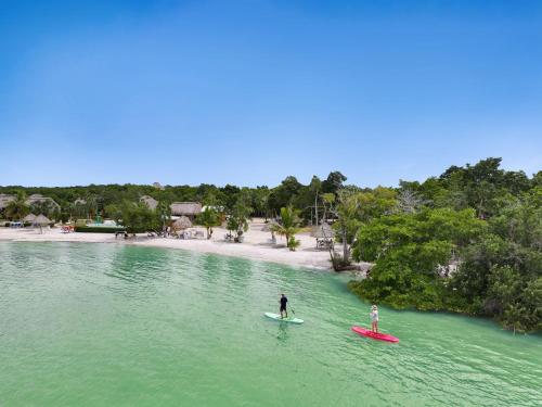 The accommodations include Mayan-inspired thatched oceanfront and garden cabanas or modern waterfront condos with patios.