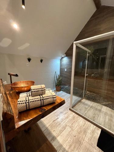 Featuring air-conditioned accommodation with a patio, Chalé Montserrat - Lareira e Vista para as Montanhas! is set in Nova Friburgo. This recently renovated chalet is located 5.4 km from Eduardo Guinle Stadium - Friburguense A.C. And 5.5 km from Sesi. There is a sun terrace and guests can make use of free WiFi and free private parking.