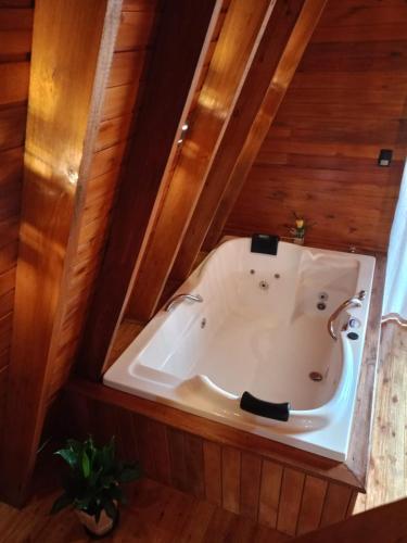 The 1-bedroom chalet comes with a living room with flat-screen TV, a fully equipped kitchen with kitchenware, and 1 bathroom with a hot tub.