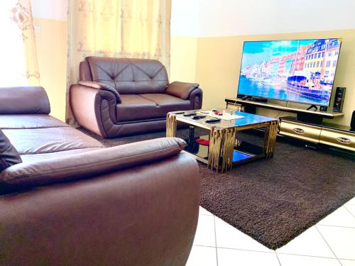 Featuring air-conditioned accommodation with a rooftop pool, mountain view and a balcony, Grant Lexus Apartment Mimboman is located in Mimboman. This property offers access to a terrace, free private parking and free WiFi. The property is soundproof and is set 3.8 km from Yaounde Central Station.
