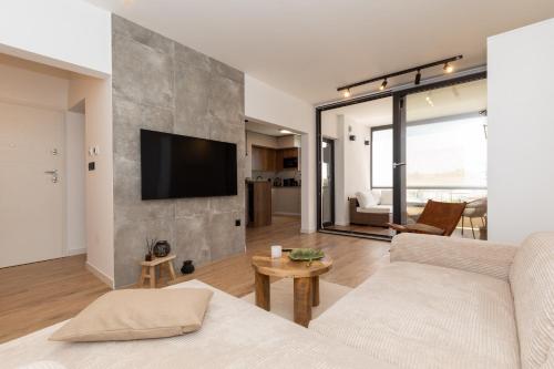 The spacious apartment with a balcony and sea views has 1 bedroom, a living room, a flat-screen TV, an equipped kitchen with a dishwasher and an oven, and 1 bathroom with a walk-in shower. Towels and bed linen are available in the apartment. Additional in-room amenities include wine or champagne.