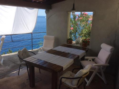 The holiday home has 2 bedrooms, 1 bathroom, bed linen, towels, a flat-screen TV with satellite channels, a dining area, a fully equipped kitchen, and a terrace with sea views. For added privacy, the accommodation features a private entrance.