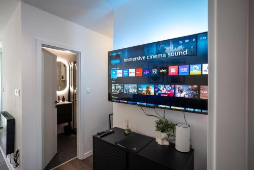 The apartment has 1 bedroom, a flat-screen TV with streaming services and a fully equipped kitchen that provides guests with a dishwasher, an oven, a washing machine, a fridge and a stovetop. Towels and bed linen are available in the apartment. The accommodation offers a fireplace.