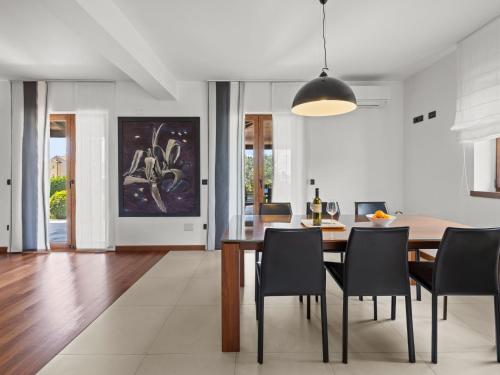 The spacious villa is equipped with 4 bedrooms, 3 bathrooms, a TV with satellite channels, a dining area, a fully equipped kitchen, and a terrace with sea views. The property offers pool views.