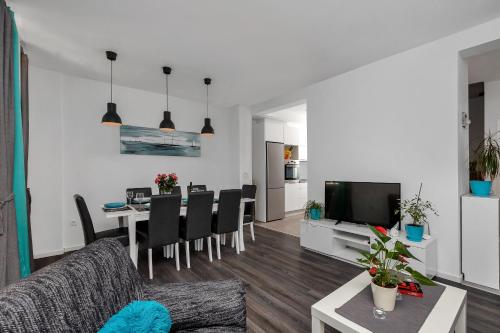 The villa with a terrace and sea views features 3 bedrooms, a living room, a flat-screen TV, an equipped kitchen with a dishwasher and an oven, and 4 bathrooms with a walk-in shower. Towels and bed linen are provided in the villa. The property has an outdoor dining area.