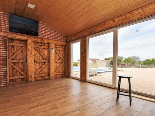 The spacious holiday home with a terrace and pool views has 3 bedrooms, a living room, a TV, an equipped kitchen with a dishwasher and an oven, and 2 bathrooms with a shower.