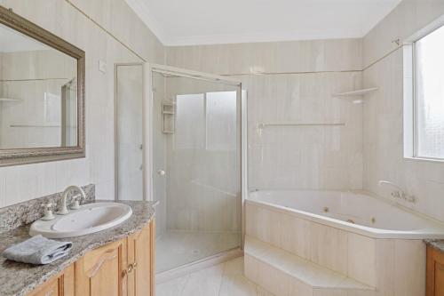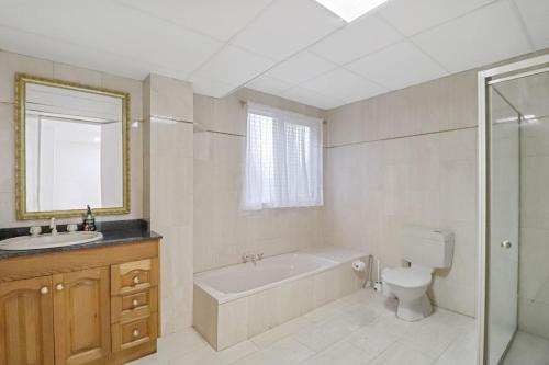 Tento prázdninový dům s klimatizací má 7 ložnice, obývací prostor, kuchyň s kompletním vybavením včetně lednice a myčky nádobí a 4 koupelny. Koupelna je vybavená sprchou a vanou.