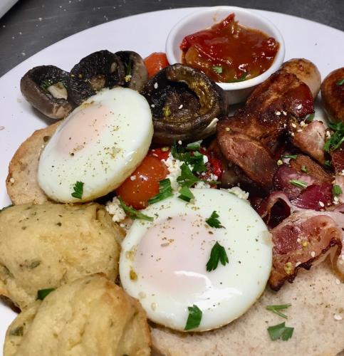Každé ráno se na místě podává kontinentální snídaně, anglická/irská snídaně nebo vegetariánská snídaně.