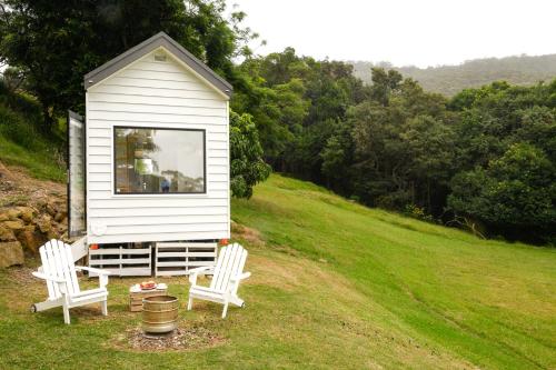 Tiny Nest má 1 ložnici s klimatizací, jídelní část a kuchyňský kout s kompletním vybavením včetně lednice. V této chatě jsou k dispozici ručníky a ložní prádlo.