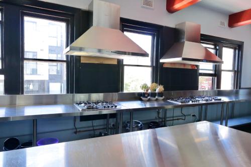 Plus, you get free wifi, large communal kitchen, common area with pool table and a communal outdoor terrace. Guests also receive discounts on our awesome new sports bar and grill called Harvey’s located just downstairs.