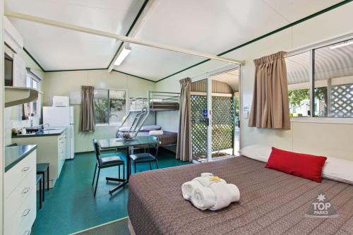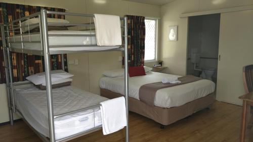 Prázdninový areál poskytuje prostorné kajuty s terasou, vlastní koupelnou, klimatizací, TV a mikrovlnnou troubou. Některé apartmány mají kuchyň se sporákem a toustovačem. Goondiwindi Holiday Park má prádelnu s pračkami, sušičkami a šňůrami na prádlo.