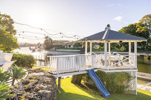 Chic Coastal Waterside Stunner! se může pochlubit výhledem na řeku a nabízí ubytování s venkovním bazénem a balkonem. Konferenční a výstavní centrum Gold Coast se nachází přibližně 3,4 km odtud. Tento prázdninový dům nabízí soukromý bazén, zahradu, neplacené soukromé parkoviště a možnost vlastního stravování.