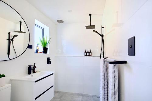 The apartment features 1 bedroom, a flat-screen TV with streaming services, a fully equipped kitchen with a dishwasher and an oven, a washing machine, and 1 bathroom with a walk-in shower. A private entrance leads guests into the apartment, where they can enjoy some wine or champagne and chocolates or cookies.