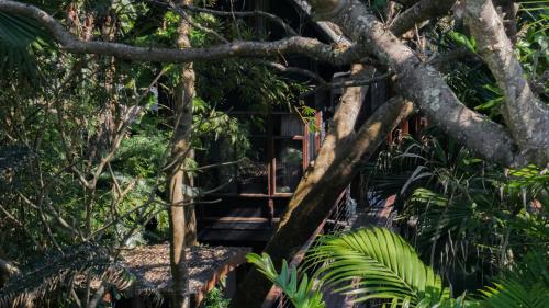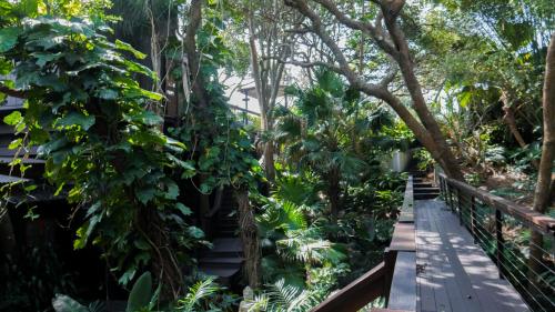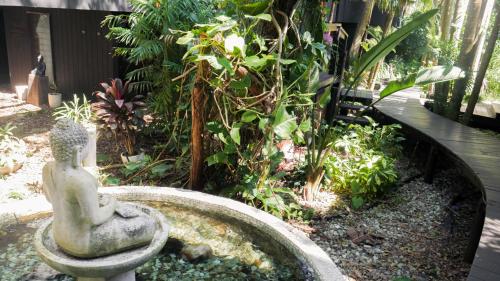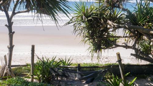 Shambhala @ Byron nabízí výhled na Tichý oceán a soukromý přístup na pláž Belongil. Hosté mohou odpočívat v tropických zahradách na balijské lenošce nebo houpací síti.