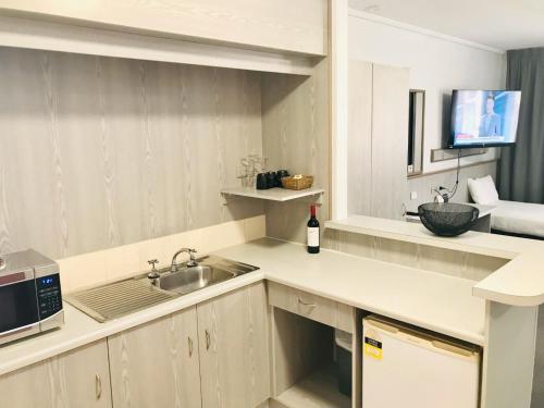 Comfort Inn Glenelg má pokoje s mikrovlnnou troubou, TV a příslušenstvím pro přípravu čaje a kávy. K dispozici je také fén, klimatizace, žehlička a žehlicí prkno.