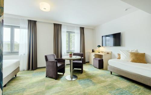 The modern rooms at Le Côté Vert feature air conditioning, satellite TV and a laptop-size safe. Some units come with kitchen facilities.