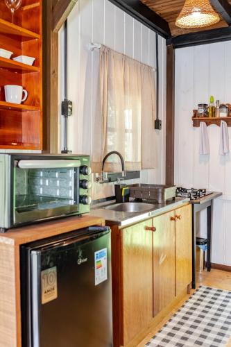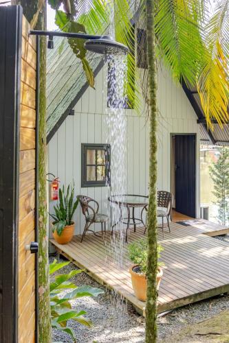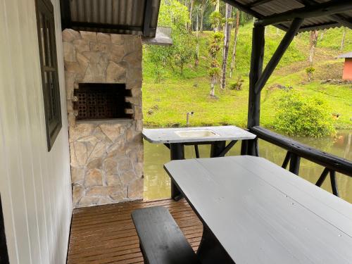Located in Benedito Novo, 46 km from Blumenau Bus Station and 46 km from Vila Germanica, Cabana Lake Side Refúgio Charmoso no Vale Europeu offers a garden and air conditioning. This property offers access to a balcony and free private parking. The chalet has an outdoor fireplace and a hot tub.