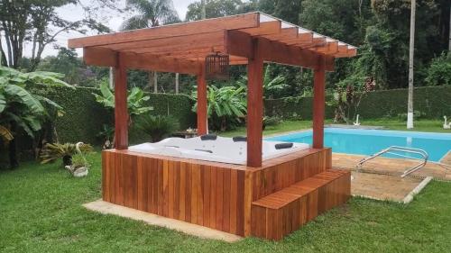 Chácara Atibaia, 45 minutos de SP nabízí 1 ložnici, 9 koupelny, kuchyň s dobrým vybavením, TV s plochou obrazovkou a vířivku. Prázdninový dům má také koupelnu.