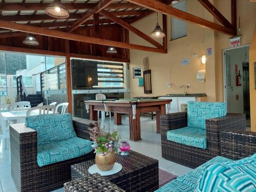 Může se pochlubit panoramatickým výhledem na pláž Bombas. Praia Apart Hotel - unidade rua Bem Te Vi nabízí venkovní bazén, sdílený lounge a hernu. K dispozici je bezplatné Wi-Fi ve všech prostorách a neplacené parkoviště.