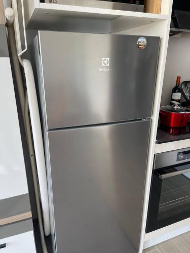 Tento apartmán s klimatizací má 1 ložnici, TV s plochou obrazovkou, jídelní část, kuchyň s lednicí a obývací prostor.