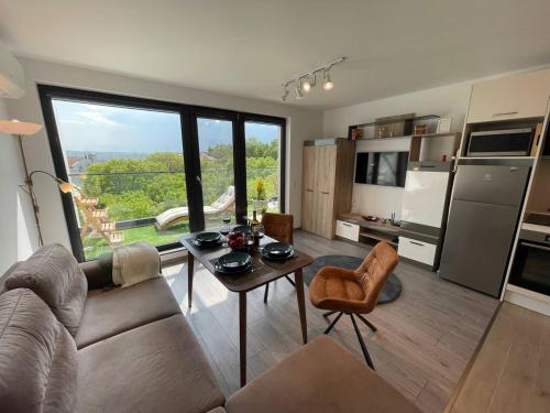 Panoramic apartment in Varna with underground parking se nachází v centru města Varna a může se pochlubit patiem s výhledem na město. Toto ubytování u pláže nabízí terasu, neplacené soukromé parkoviště a bezplatné Wi-Fi.