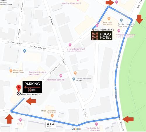 Hugo Hotel se nachází v centru města, vedle malebné mořské zahrady, 300 metrů od pláže. Klimatizované pokoje jsou vybavené kabelovou TV s plochou obrazovkou a bezplatným Wi-Fi.