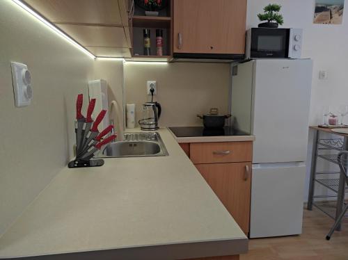 Tento apartmán s klimatizací má 1 ložnici, TV s plochou obrazovkou a kuchyň s lednicí a mikrovlnnou troubou.