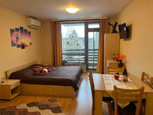 Aspen Suites Студио Слънчев ден se nachází v destinaci Razlog a může se pochlubit balkonem s výhledem na hory a na bazén. Těšit se můžete také na venkovní bazén, saunu a vířivku. Tento apartmán poskytuje soukromý bazén, zahradu, neplacené soukromé parkoviště a možnost vlastního stravování.