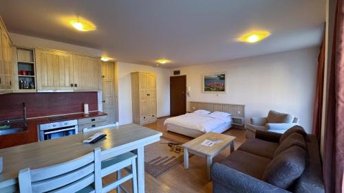 Tento apartmán má 1 ložnici, 1 koupelnu, ložní prádlo, ručníky, TV s plochou obrazovkou, jídelní část a kuchyň s kompletním vybavením. Může se pochlubit také terasou s výhledem na hory. Koupelna je vybavená sprchou a k dispozici je také fén, pantofle a župany.
