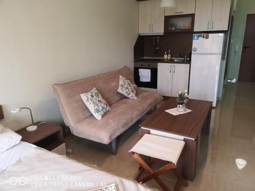 Tento apartmán s klimatizací má 1 ložnici, obývací prostor, kuchyňský kout s kompletním vybavením včetně lednice a 1 koupelnu. Koupelna je vybavená vanou nebo sprchou.