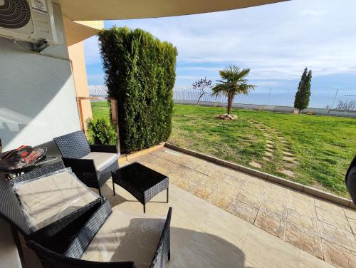 Apartmán má 1 ložnici, 1 koupelnu, ložní prádlo, ručníky, TV s plochou obrazovkou se satelitními programy, kuchyň s kompletním vybavením a terasu s výhledem na moře. Koupelna je vybavená sprchou a fénem.
