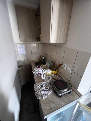 V kuchyni je k dispozici lednice, mikrovlnná trouba, toustovač a varná konvice.