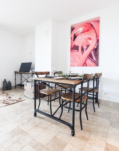 Apartmán má gril a velkou terasu, kde si hosté mohou vychutnat večeři s výhledem na moře.