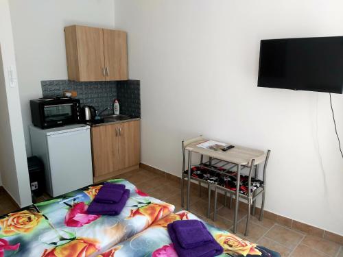 V některých ubytovacích jednotkách je také kuchyň s myčkou nádobí, mikrovlnnou troubou a varnou deskou.